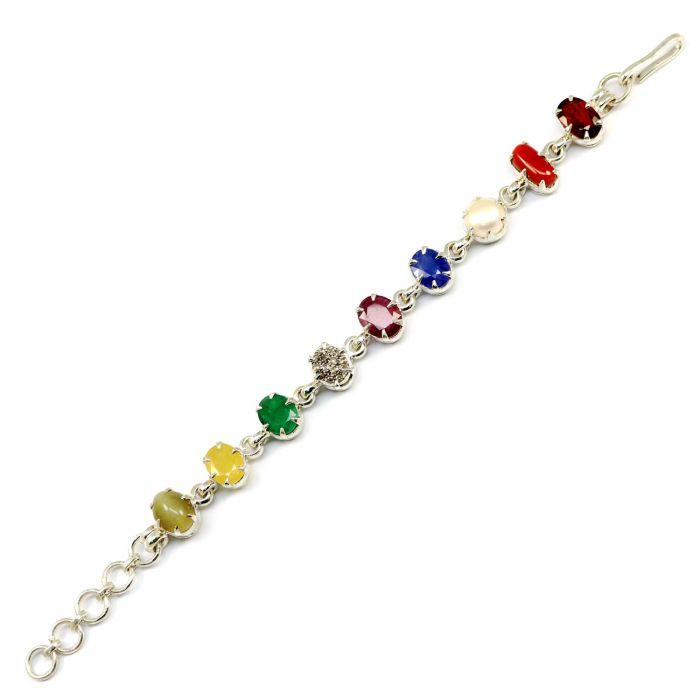 Navratna Sterling Silver Bracelet with all Nine Natural Gemstones for Navgraha Lab Certified 44.69gm is available to buy in increments of 1